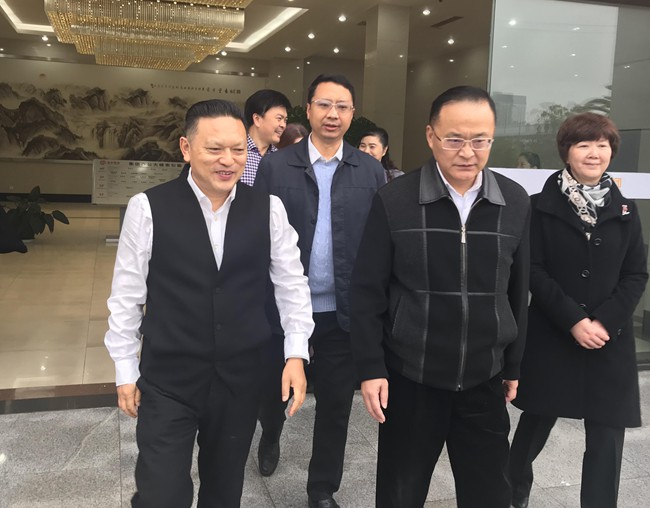 2018年11月15日上午,自貢市人大主任、黨組書記譚豹率市人大班子成員楊征宇、石岷嘉、胡開洪、詹勇、蒲定波、官勇、熊開來及市經信委、高新區、大安區有關領導一行30余人視察四川安益生物科技有限公司“提升貸”政策落實、受益情況。