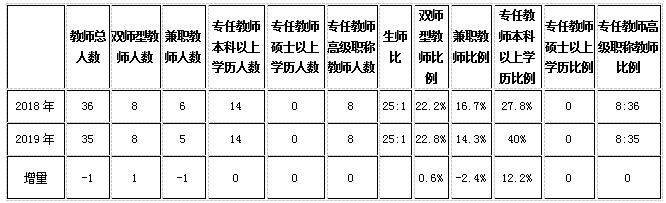 學校現有教師 35人,本科以上學歷 14人,占40%;其中雙師型教師人數8人,占22.8%;兼職教師5人,占14.3%;學校以優化“雙師”結構為師資隊伍建設重點,不斷強化“雙師”素質師資隊伍建設力度,大力引進具有雙師型技能教師,另通過培訓、下企業鍛煉、參加技能大賽等形式,不斷提高在校教師實際工作技能和社會實踐經驗,“雙師”素質教師比例不斷提高,雙師型教師比例占教師的22.8%。