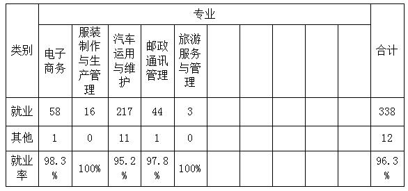 學校專業設置校以“大而全、特而精”為方向,與社會經濟發展、產業結構、人才需求緊密對接和融合,適應傳統產業轉型升級、鄉鎮企業蓬勃興起等經濟結構特點,開設有汽車運用與維修、電子商務、郵政通信管理、工商企業管理事務等 6個專業,其中我校重點打造汽車運用與維修專業為特色專業。同時從2018年秋季學期開始,確立以電子商務專業為主的財經商貿類對口升學專業。