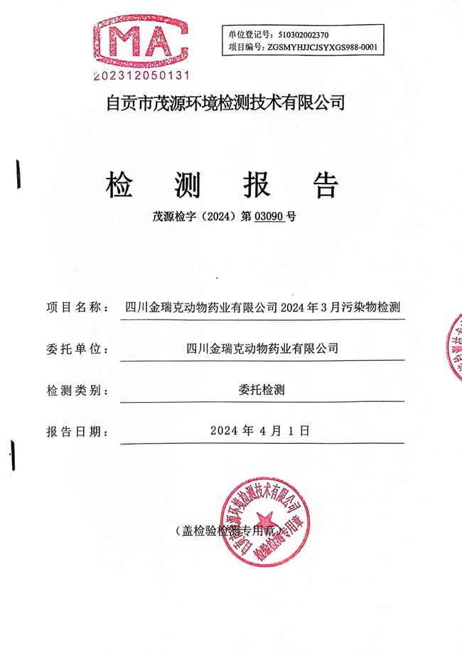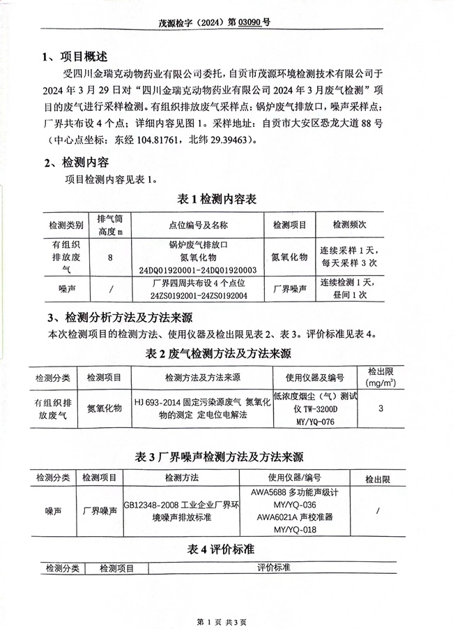 四川金瑞克動物藥業有限公司2024年3月廢氣、噪聲檢測報告
